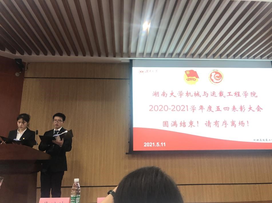 大会最后,两位主持人对本次大会作以总结,他们对获奖的各位同学表示祝贺,同时,希望广大青年团员能够积极学习并贯彻五四精神,成为志向远大,勤劳能干,务实笃行的青年人。勇敢担负起国家富强、民族复兴的历史重任和光荣使命。