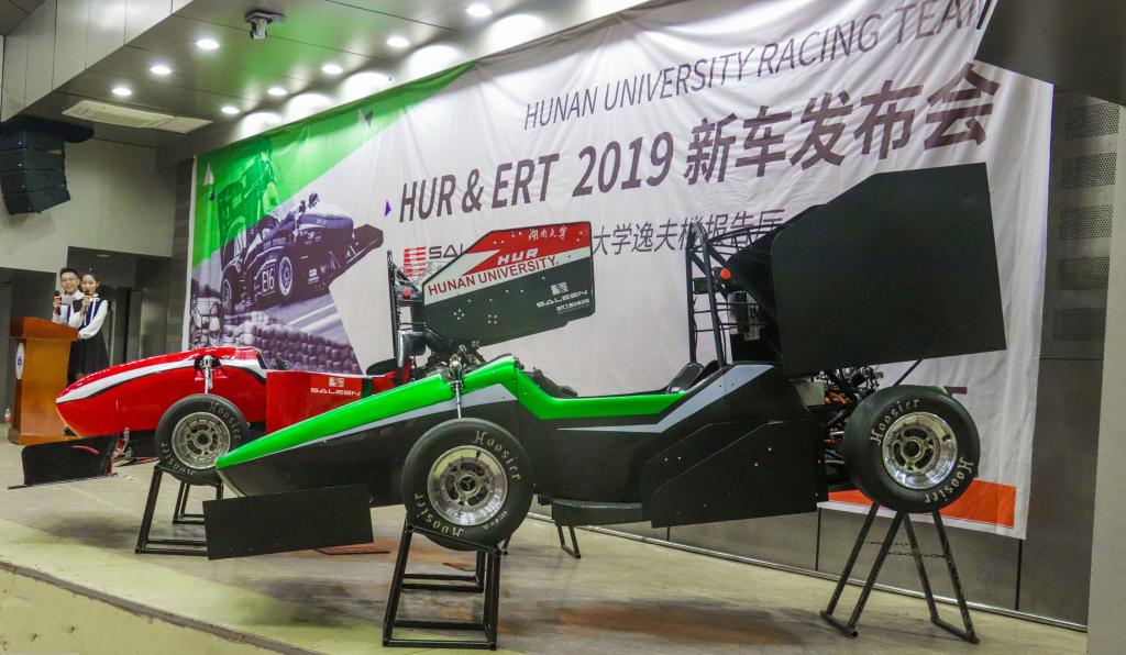 “HUR-2019”是一辆油车。其大胆采用各种新材料及新技术。车身车架系统首次采用半单体壳配合后车架的车架形式,前防滚架完全层压至单体壳内,系统总重36kg,相比上赛季减重10%。其使用cbr600rr发动机,自主设计了干式润滑系统,传动系统利用自主编写的Matlab程序,结合实际耐久工况分析得出最佳传动比。另外,还新增制动系统导风结构和PDM配电模块、方向盘显示模块,有效减小制动盘的热衰减,使整车电气化程度更加完善。