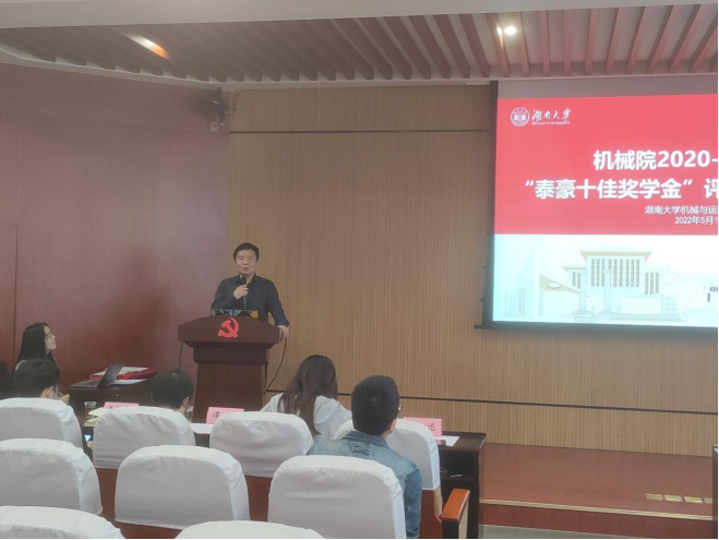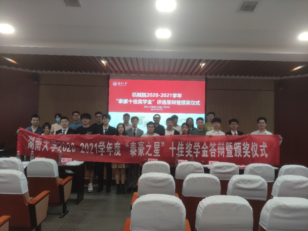 2022年5月17日14:30, 2020-2021年度“泰豪十佳奖学金”评选暨颁奖仪式在机械院401顺利举行,出席本次颁奖仪式的有3003新葡的京集团网址党委副书记贺迅、教务办主任周岚、辅导员孙文婷、谭想、李明泽。
