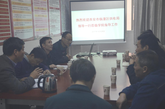 10月25日上午,国家电网西安市临潼区供电公司党委书记王建涛一行到电控学院交流。电控学院党委书记杨勇、院长付周兴、副院长杜京义、实验中心主任杨建翔、教授赵建文参加交流座谈。杨勇书记首先对王建涛书记一行前来电控学院交流表示欢迎,会上杨勇书记介绍了学院的基本概况,并一同参观了学院电气专业实验室。双方就党建工作、“两学一做”学习教育、学生专业实践培养、创新创业教育工作、电力系统科学研究等方面进行了深入交流,希望以后继续加强合作。