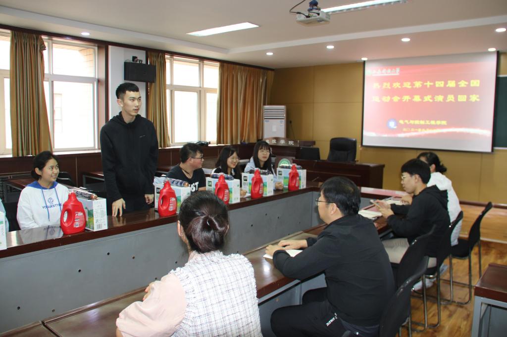 2021年9月17日中午13:00,电控学院于17-318会议室召开欢迎十四运开幕式演员回家座谈会,参加此次座谈会的有电控学院党委副书记丁铂、全体辅导员以及8名十四运开幕式演员。