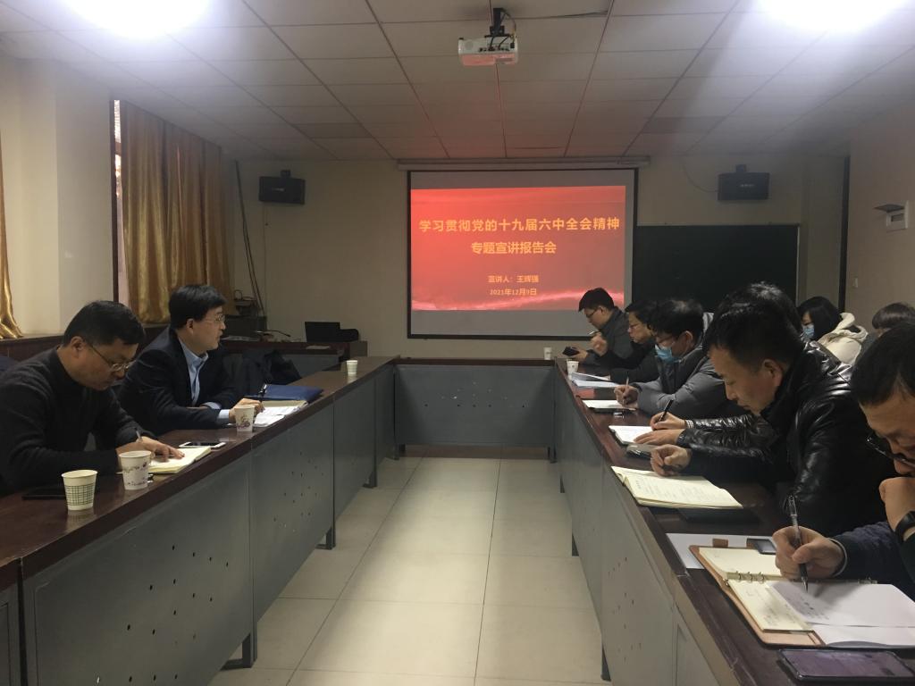 会议第二阶段,王辉强做学习贯彻党的十九届六中全会精神专题辅导报告,他重点解读了《中共中央关于党的百年奋斗重大成就和历史经验的决议》重要内容。王辉强强调,党的十九届六中全会是在“两个一百年”奋斗目标历史交汇点召开的一次十分重要的会议,对于增强“四个意识”、坚定“四个自信”、做到“两个维护”、确保全党步调一致向前进,团结带领全国各族人民为实现中华民族伟大复兴的中国梦而继续奋斗,具有重大的意义。要深入学习贯彻习近平总书记重要讲话和党的十九届六中全会精神,用于武装头脑,指导实践,推动工作,为实现学校的高质量发展作出更大贡献。