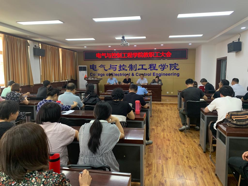 7月12日下午,电控学院在骊山校园17-318会议室召开了全体教职工大会,学院班子成员、全体教职工参加。会议由党委书记杨华主持。