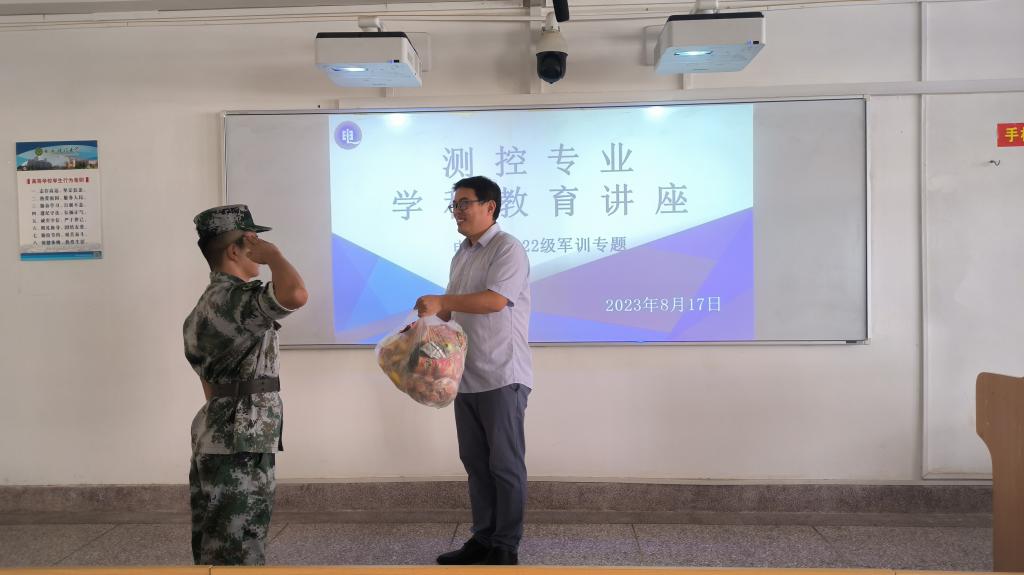 讲座结束后,各位老师代表各系部对军训的教官和学生进行了慰问,希望大家能够利用本次军训的机会,锤炼自己坚强的意志,养成良好的生活习惯,克服自身缺点,为自己的大学生生活留下美好的回忆。
