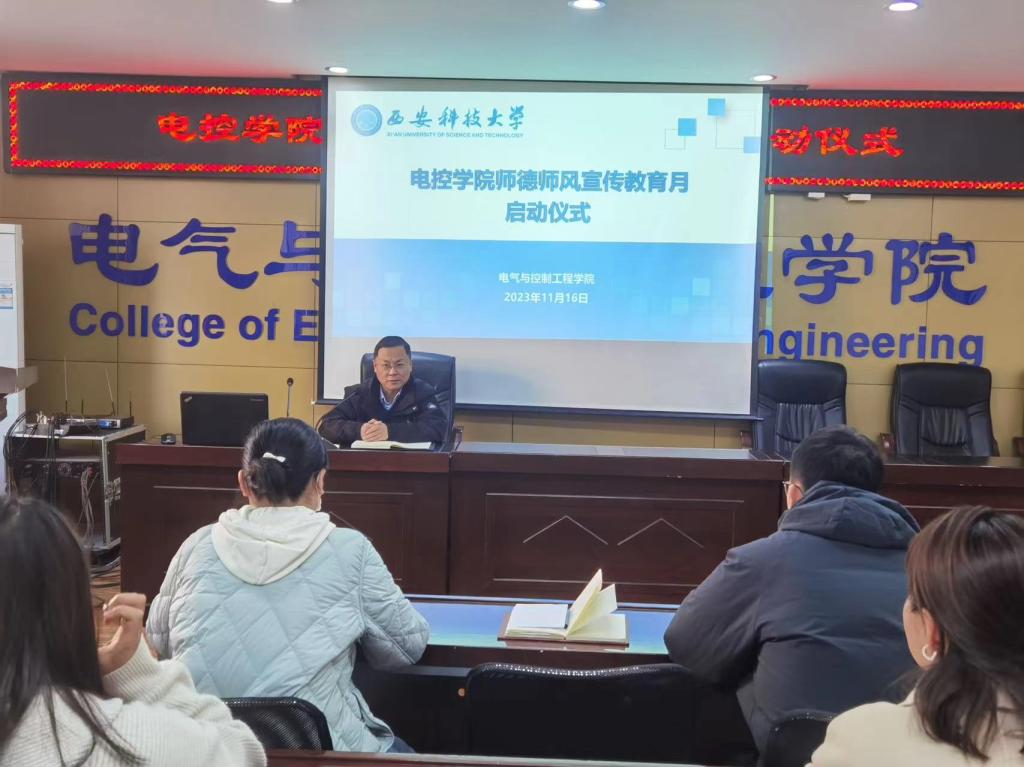 11月16日下午,电控学院在17号教学楼318会议室举办师德师风宣传教育月启动仪式暨第一次专家辅导报告,启动仪式由院长寇发荣主持,电控学院全体教工参加。