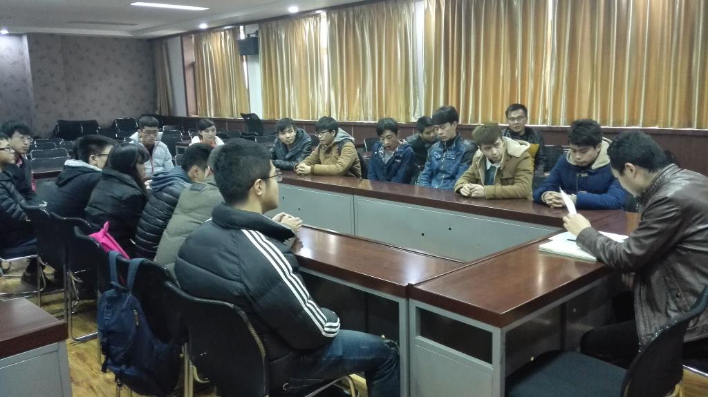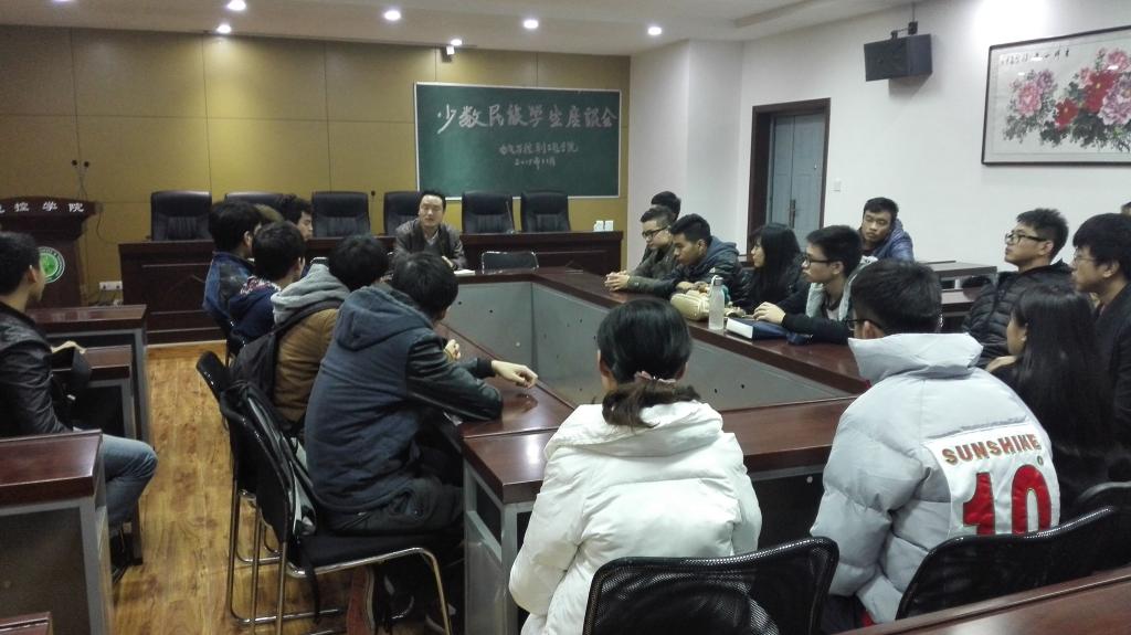 2015年12月9日中午13:00,2014级辅导员童老师主持召开了电控学院少数民族学生座谈会,全体少数民族学生参加了此次会议。