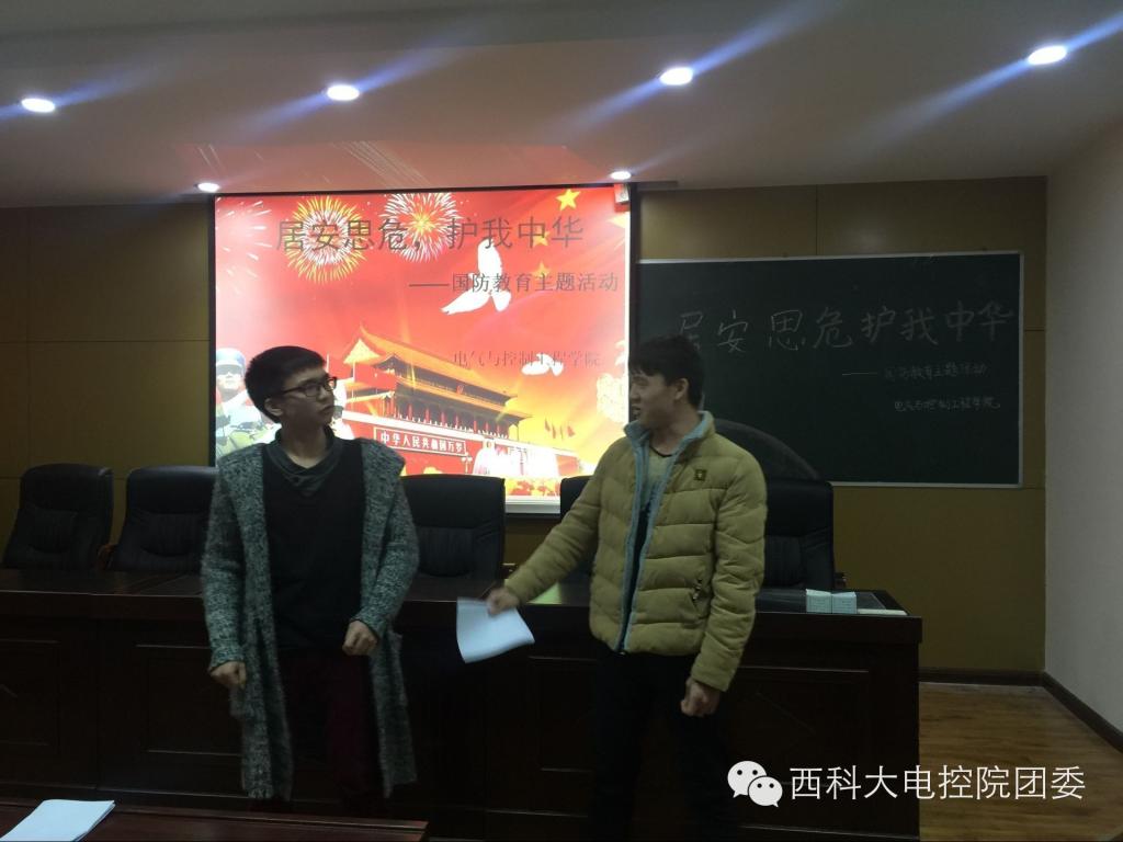 昨天,今年会官网15级辅导员丁老师,组织微电两个班开展了国防教育主题活动。14级辅导员王老师、15级辅导员冯老师也出席了本次活动。竞答环节,同学们都拿出了相当高的热情,展现了一场智慧的较量。一首《明天会更好》暖人心,每一个音符都充满情感,正如歌中所唱“让我们的笑容充满着青春的骄傲!”