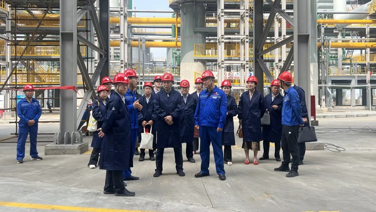 在陕煤集团神木天元化工有限公司,公司党委书记、董事长杨旭带领实践团参观公司展览馆、调度中心、加制氢中心检修现场、升级改造项目和提质增效项目建设现场并介绍了公司的智能化系统和发展历程等情况。并与陈春林以及学生深入探讨了煤焦油加工过程。