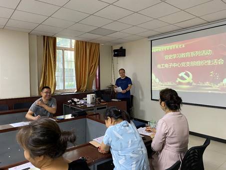 7月13日上午,电控学院电工电子中心党支部开展了党史学习教育专题组织生活会,深入学习领会习近平总书记在庆祝中国共产党成立100周年大会上重要讲话精神,围绕“学党史、悟思想、办实事、开新局”交流心得体会、开展批评与自我批评,进一步把思想和行动统一到总书记重要讲话精神上来,坚决响应、忠实践行总书记代表党中央发出的伟大号召,大力继承和发扬伟大建党精神,真正发挥党支部的战斗堡垒作用,团结带领广大干群以更大的使命担当、更好的精神面貌投入到教学及科研工作中。
