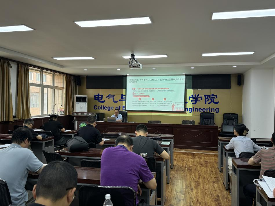 7月3日下午,电控学院在骊山校园17教318会议室召开教职工大会,党委书记杨华以“加强纪律建设 、增强规矩意识,做‘忠诚、干净、担当’的合格党员”为题,给全体党员讲授党纪学习教育专题党课。